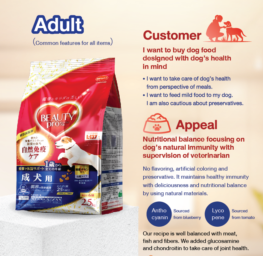 - ผลิตภัณฑ์นี้ได้รับการปรับสมดุลทางโภชนาการมาเพื่อ “สุนัข” โดยเฉพาะ กรุณาอย่าให้อาหารนี้แก่สัตว์อื่นที่ไม่ใช่สุนัข